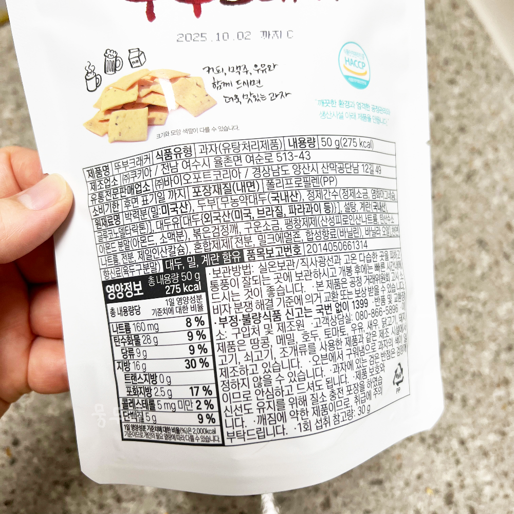 뚜부크래커는 두부과자인만큼 두부가