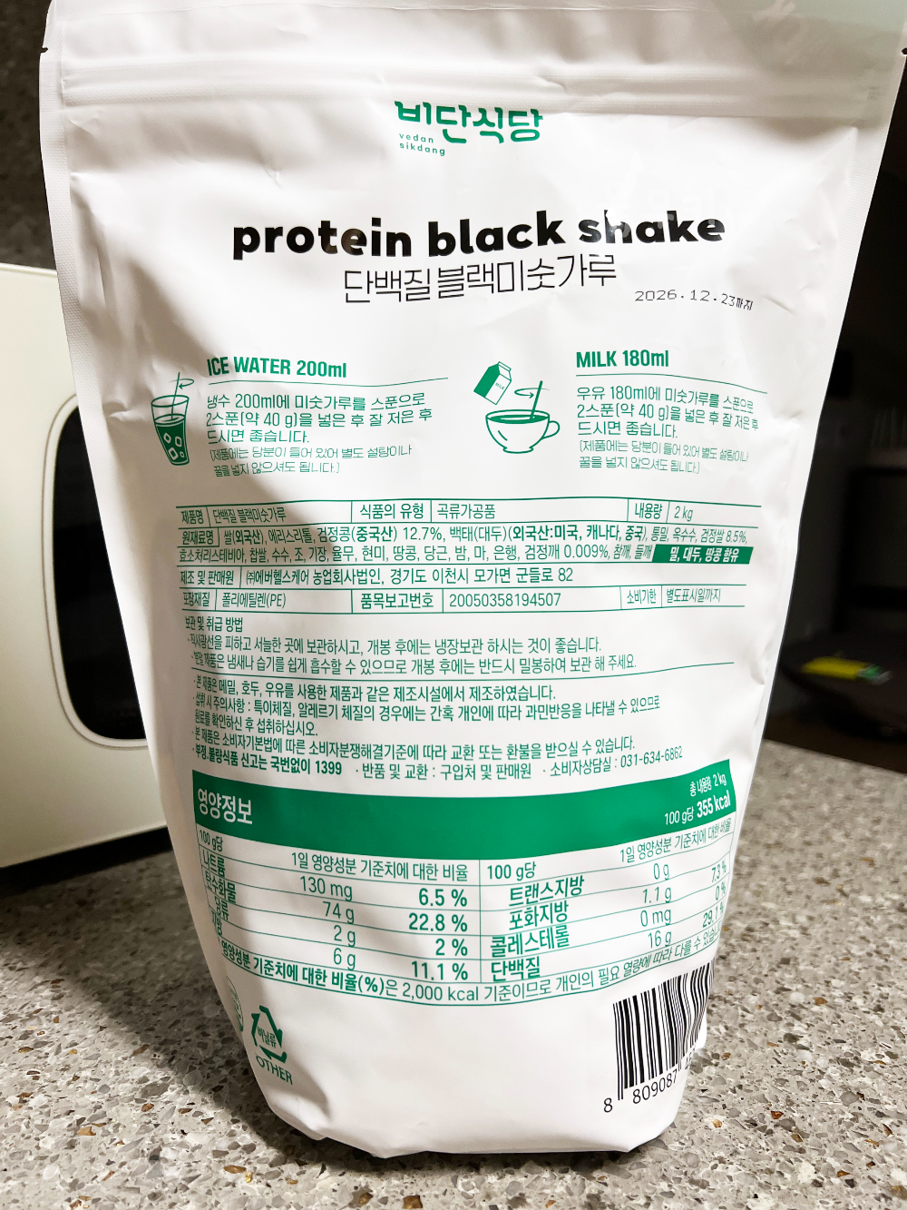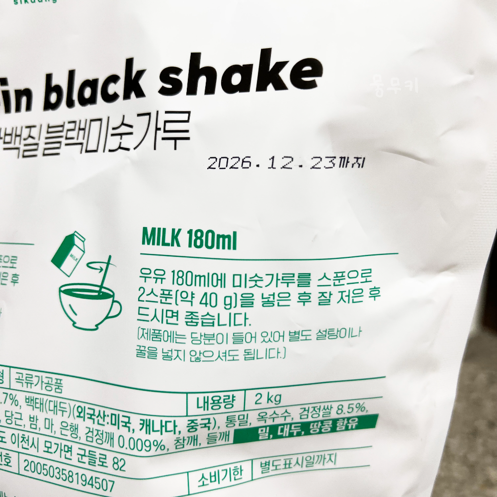 2kg짜리 단백질 블랙 미숫가루인데요.