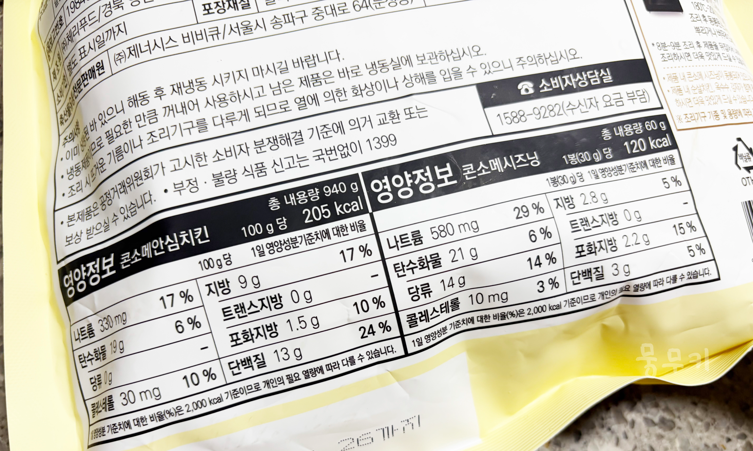제품 포장을 뜯어보면 치킨이랑